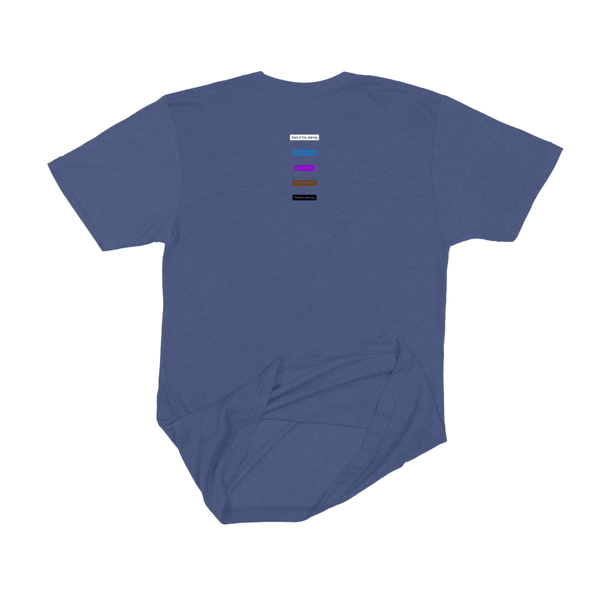 Embrace your BJJ journey with the 'Brazilian Jiu-Jitsu Belt Rank Journey Graphic Tee' by TBone Collabs. Perfect for both enthusiasts and dedicated practitioners, this navy tri-blend adult T-shirt features a striking front design integrating the word 'Jiu-Jitsu' with the art's belt colors, symbolizing the martial journey from white to black belt. The back is embellished with motivational phrases for each belt rank, adding a unique touch to your martial arts apparel.